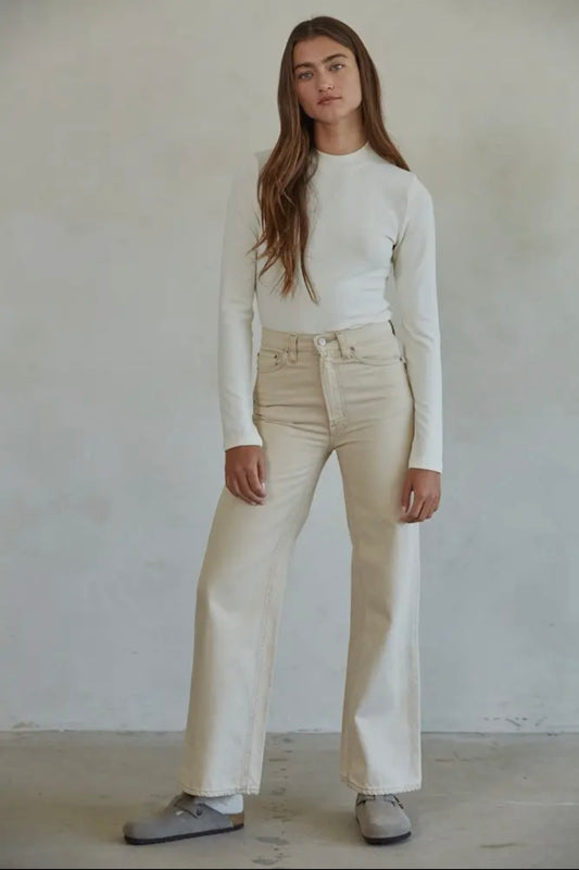 Knit Mock Neck Top- Cream