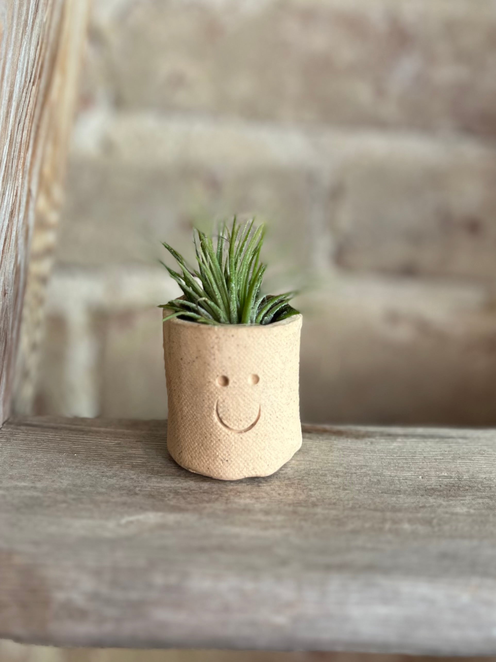 So cute & fun! These little happies can make anyone smile. Comes with the air plant. Air plants are live plants that need no soil or water! Perfect for anyone, especially those withOUT a green thumb! :)