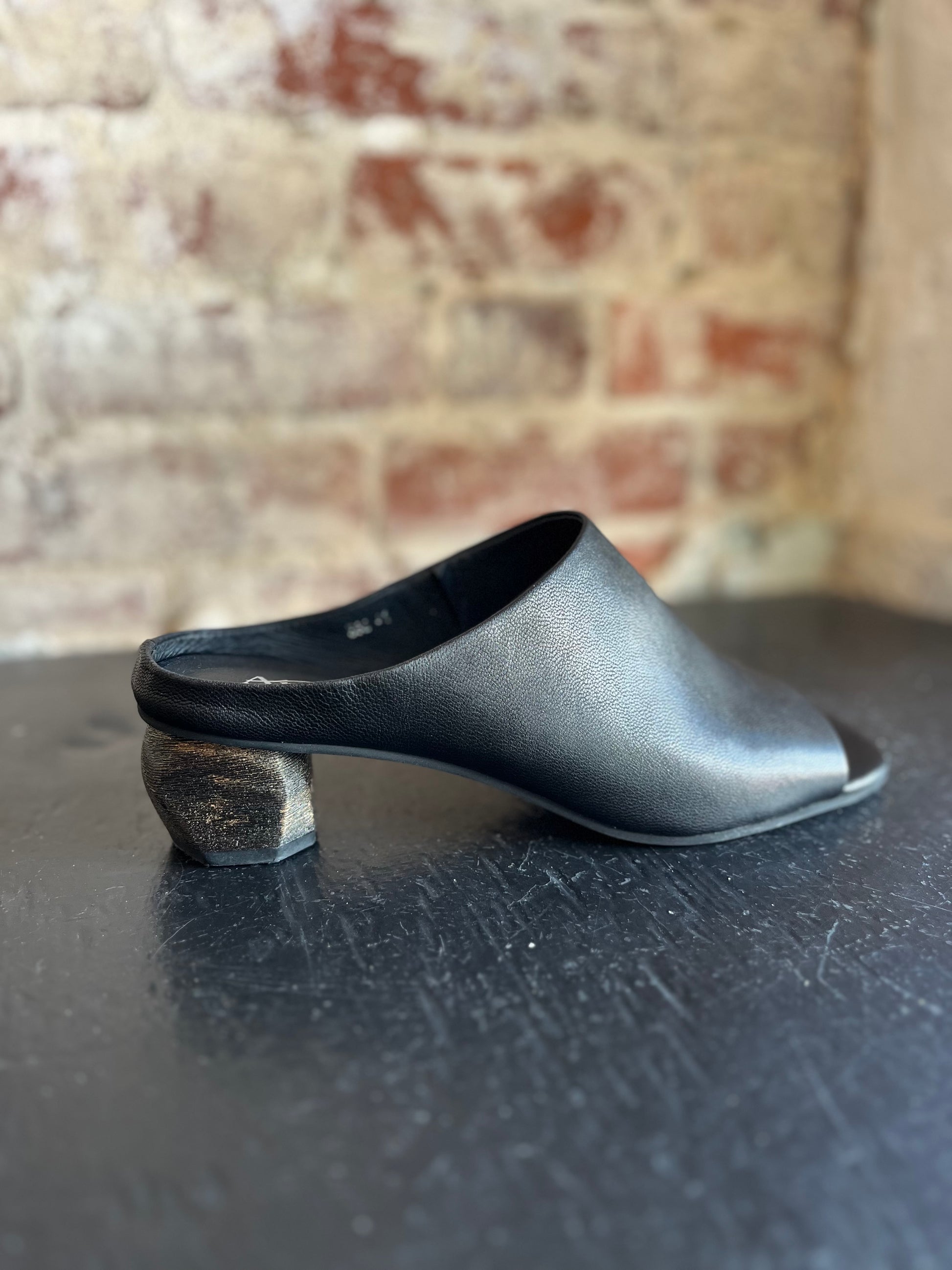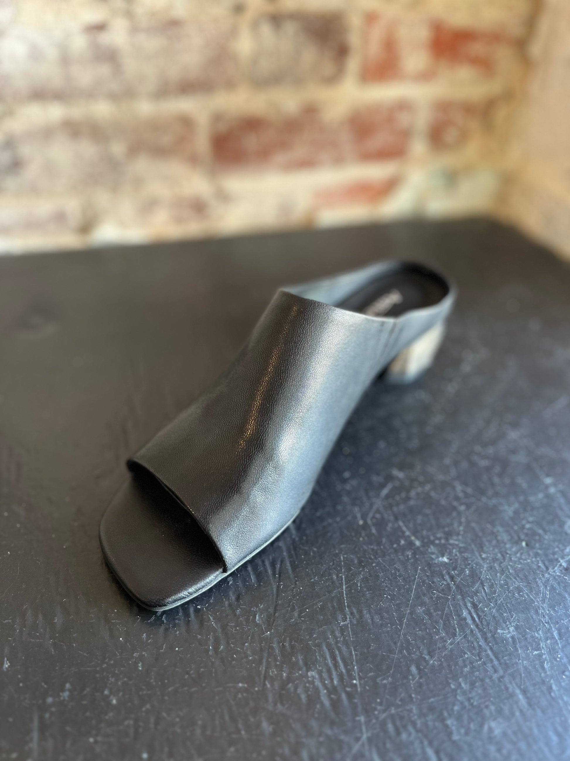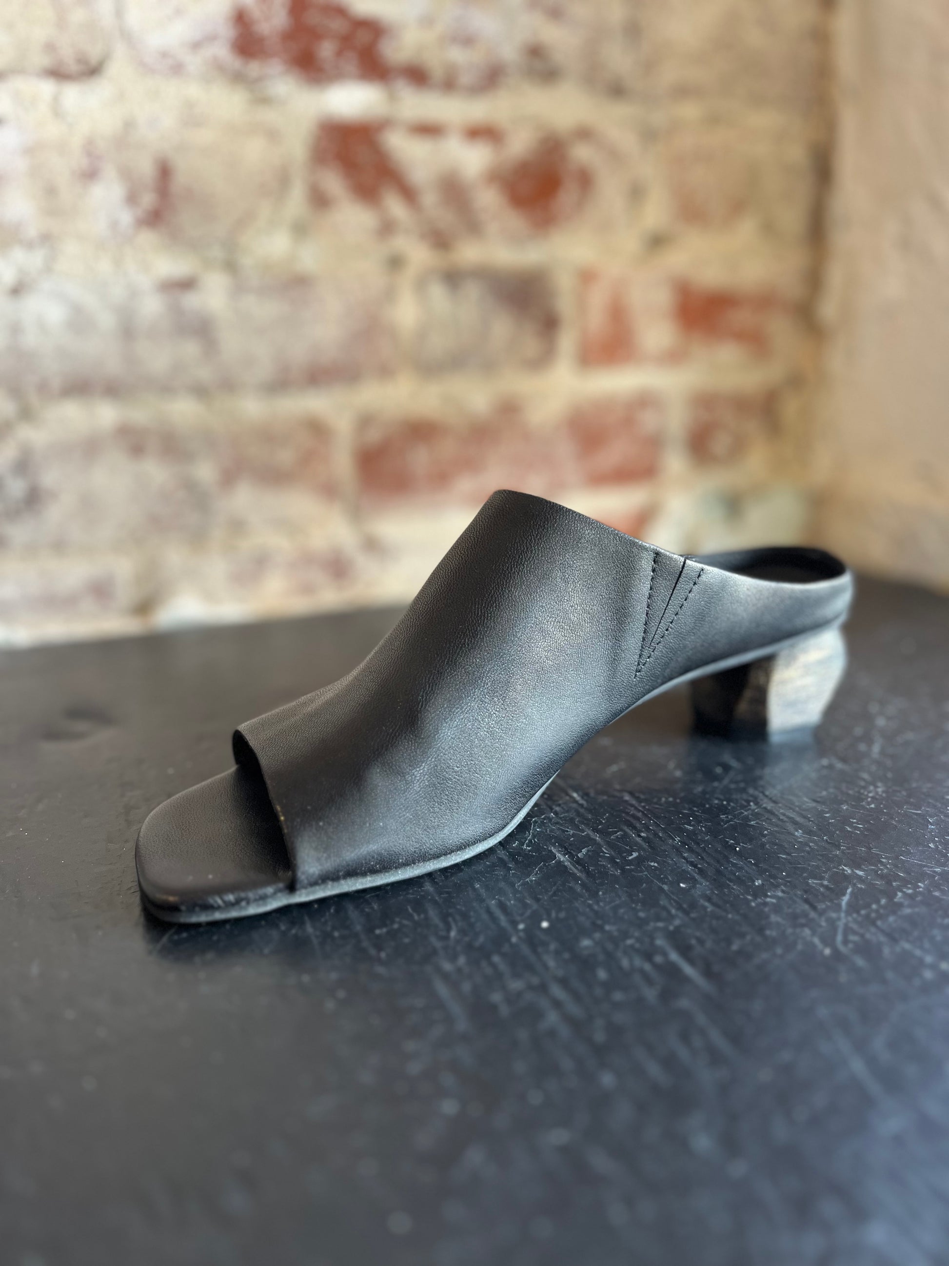 This statement mule by Antelope features elements inspired by geometry. It emphasizes beauty and simplicity with it's unique heel and minimalist cutout on the upper. This must-have heel will pair perfectly with dresses, skirts or pants.