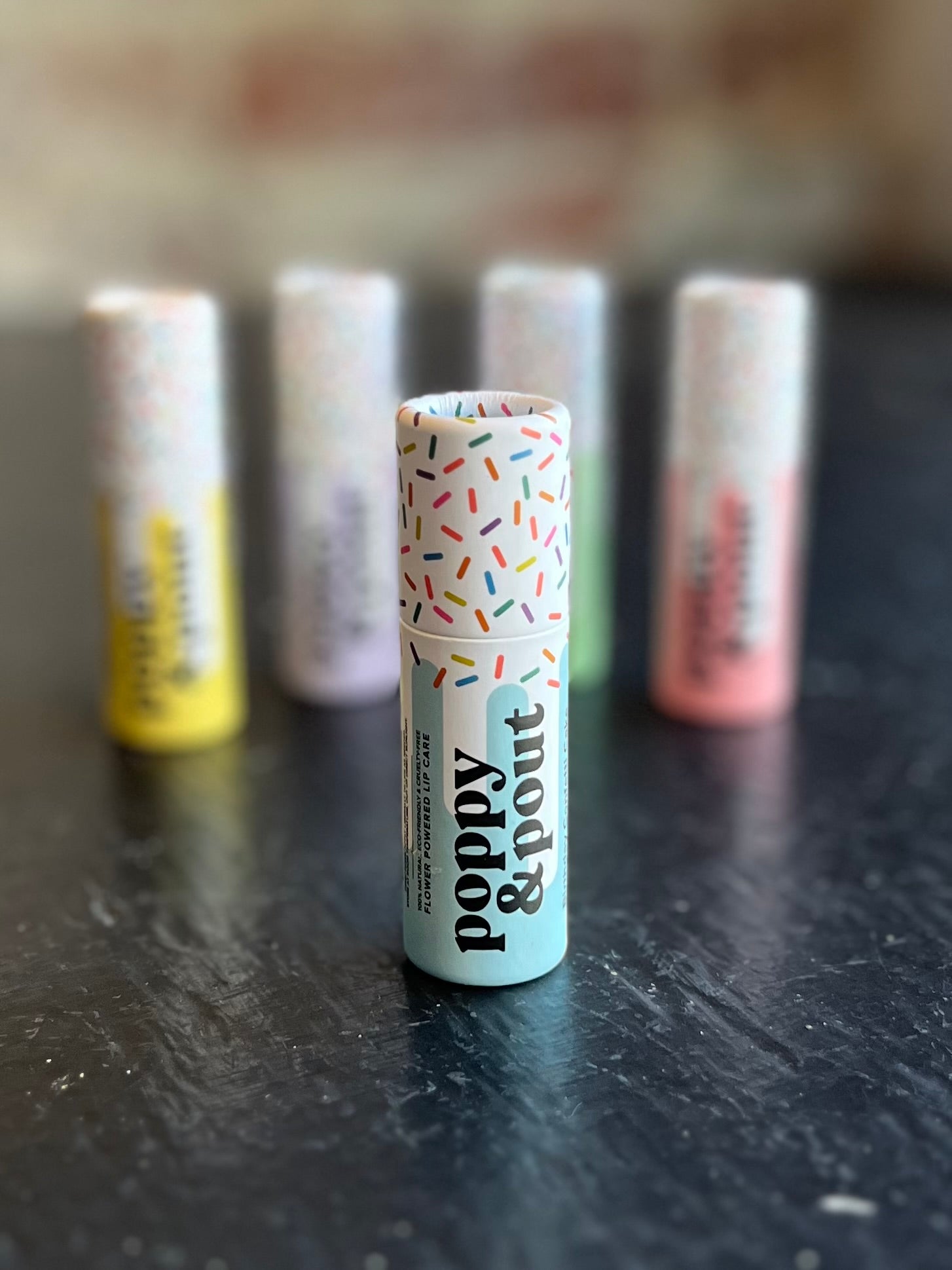 Every Poppy & Pout lip balm is made with 100% natural ingredients and hand-poured into eco-friendly cardboard tubes!