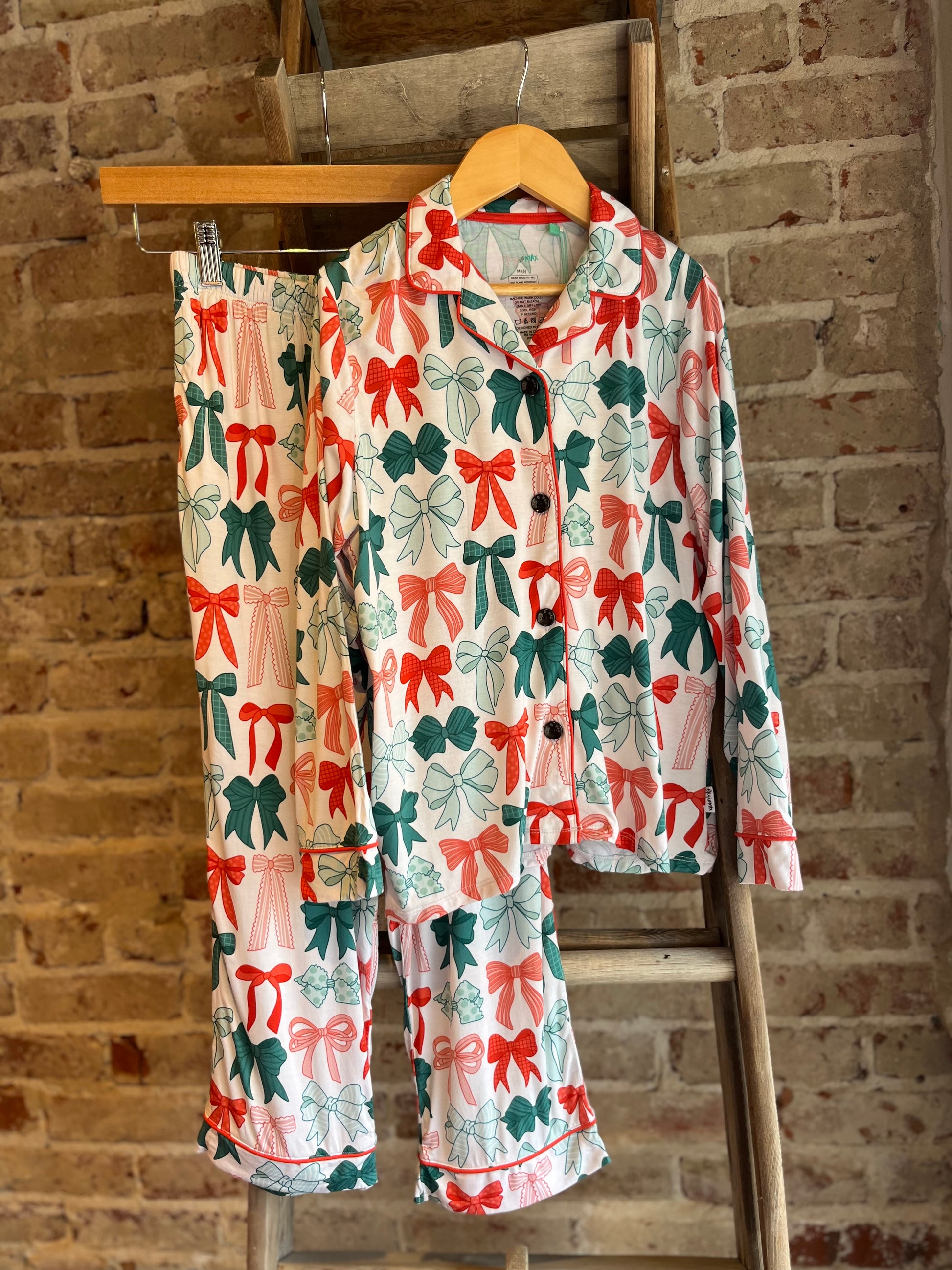 Wrap your little one in the luxurious softness of this Christmas Bow Bamboo Lounge Set. Crafted from premium bamboo fabric, these sets are designed to provide unmatched comfort and breathability, perfect for all-day play and family pairing. These fit very true to size. If you have a tall kiddo consider sizing up. Please see exact sizing of garment in the size chart of the listing, we recommend measuring against clothing you own.