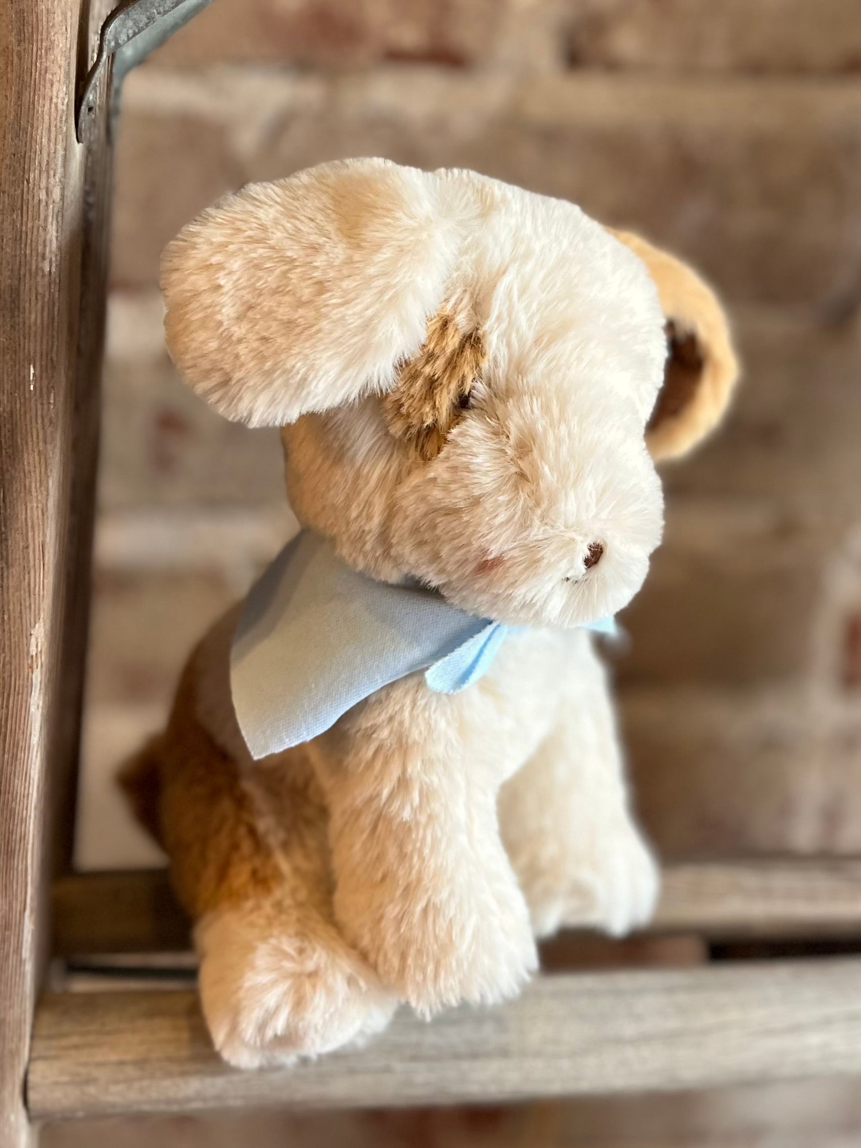 Skipit is a sailor pup who loves to splash and play, chasing balls, and watching for boats down by the bay. He has soft nibble fur in warm browns with mocha features. He comes adorned in his favorite blue sailor collar. This Skipit the Pup stuffed animal has a hand-embroidered face and pink cheeks, snuggly soft and ready for adventures!