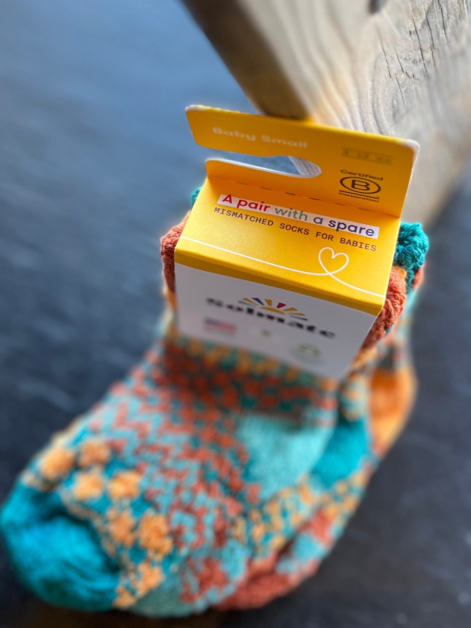 Colors in this sock: Seafoam, Dark Teal, Flame and Terracotta