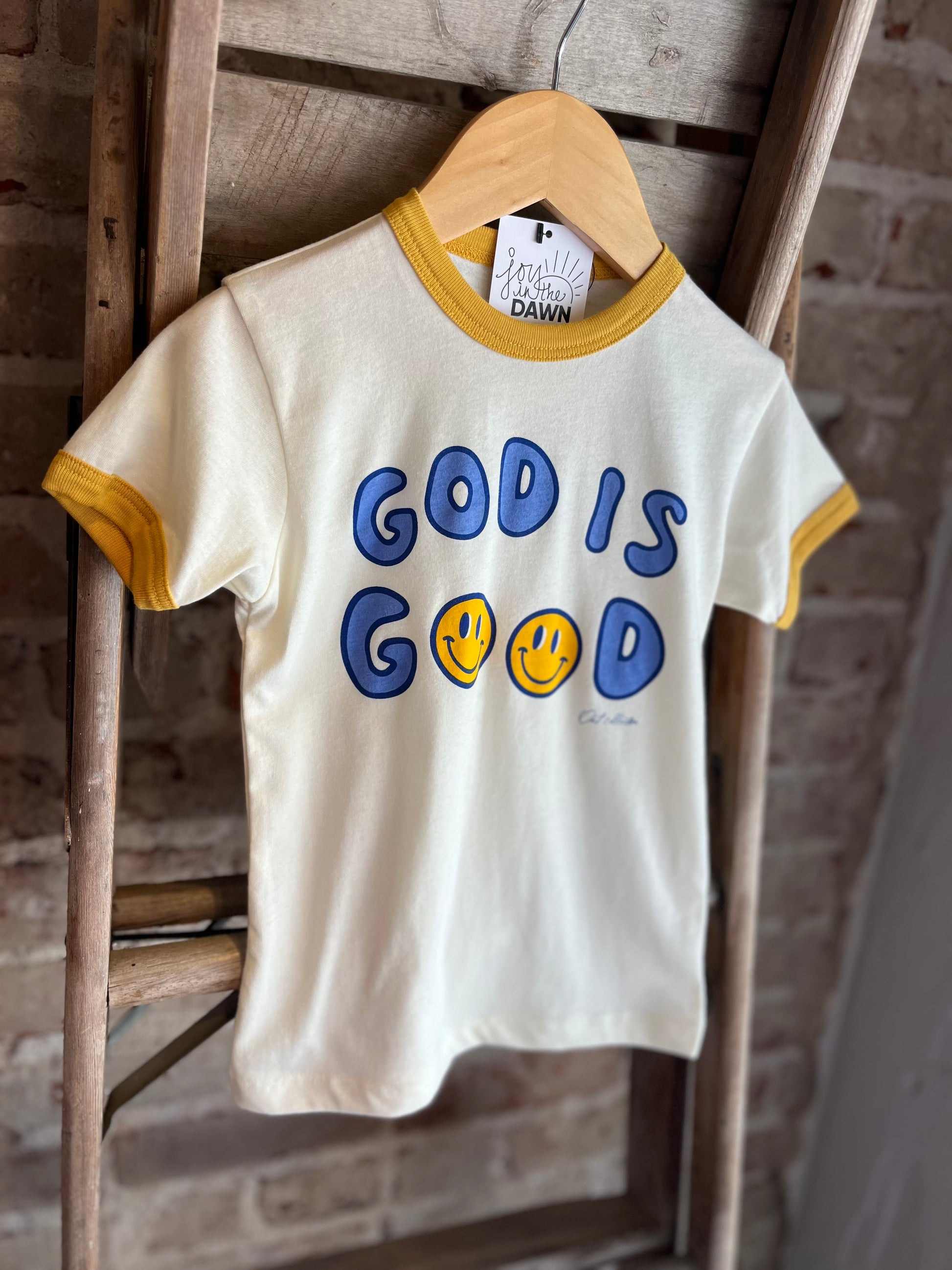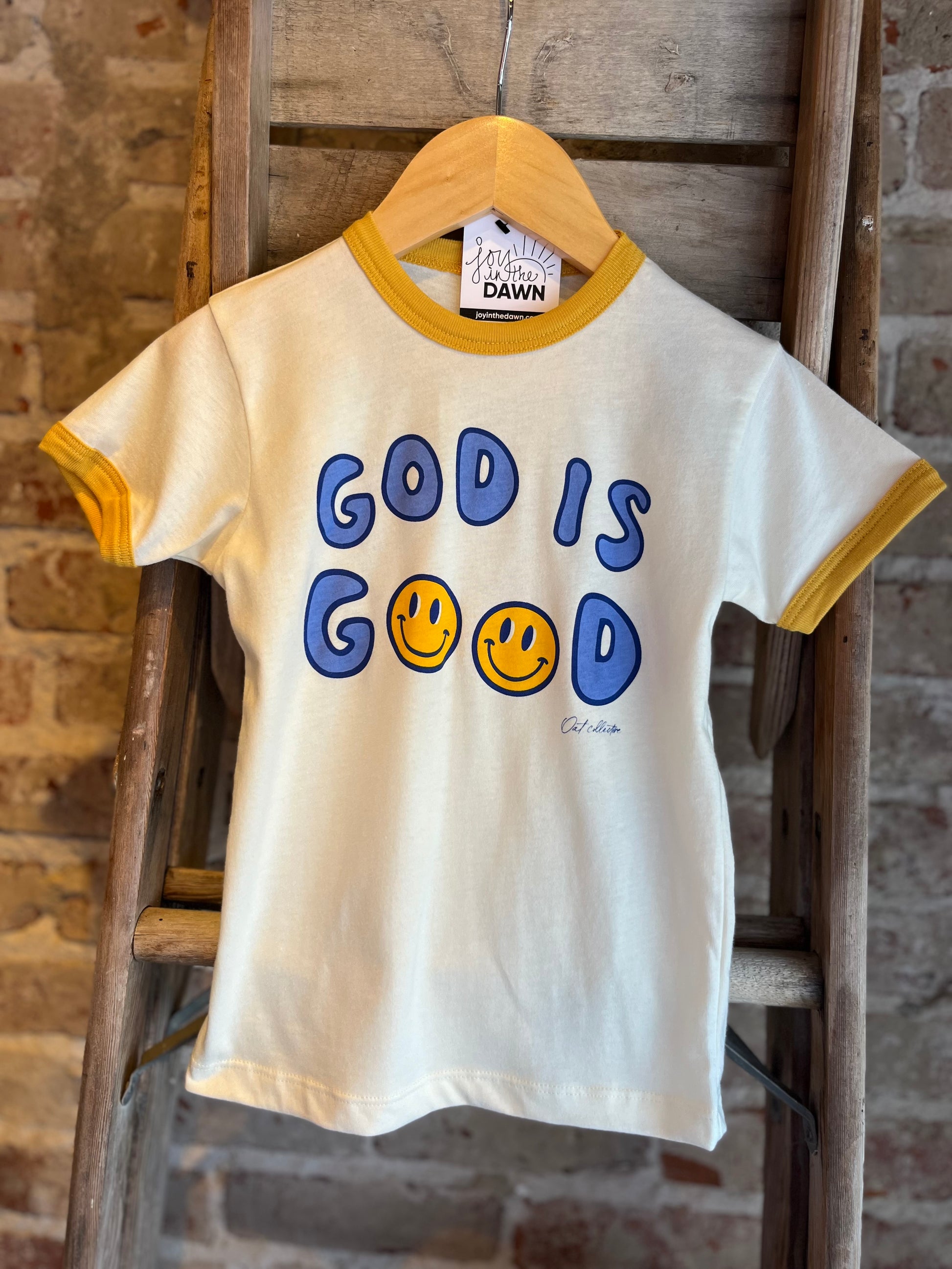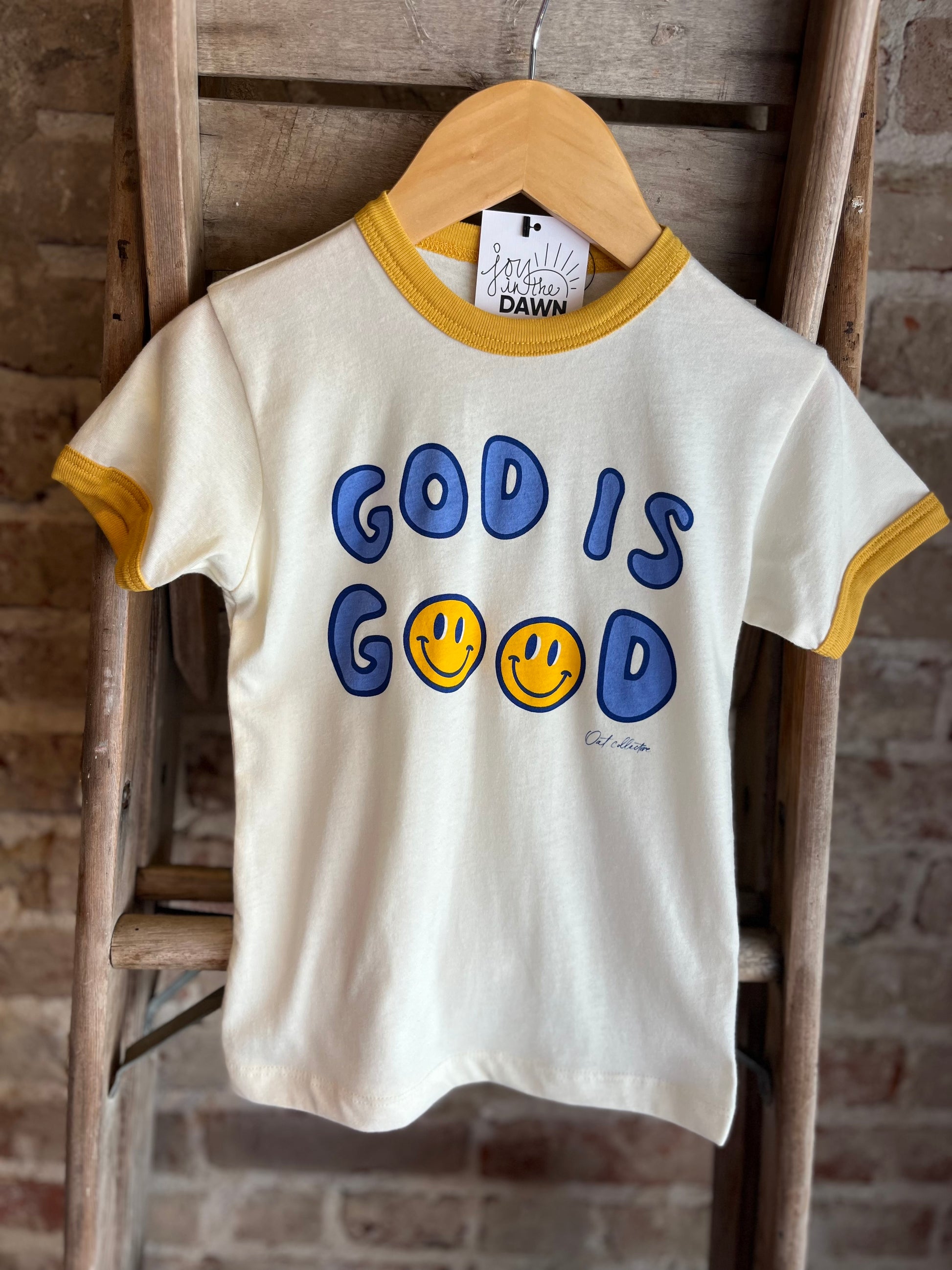 God is Good! Let your littles share the good word with this adorable ringer tee!