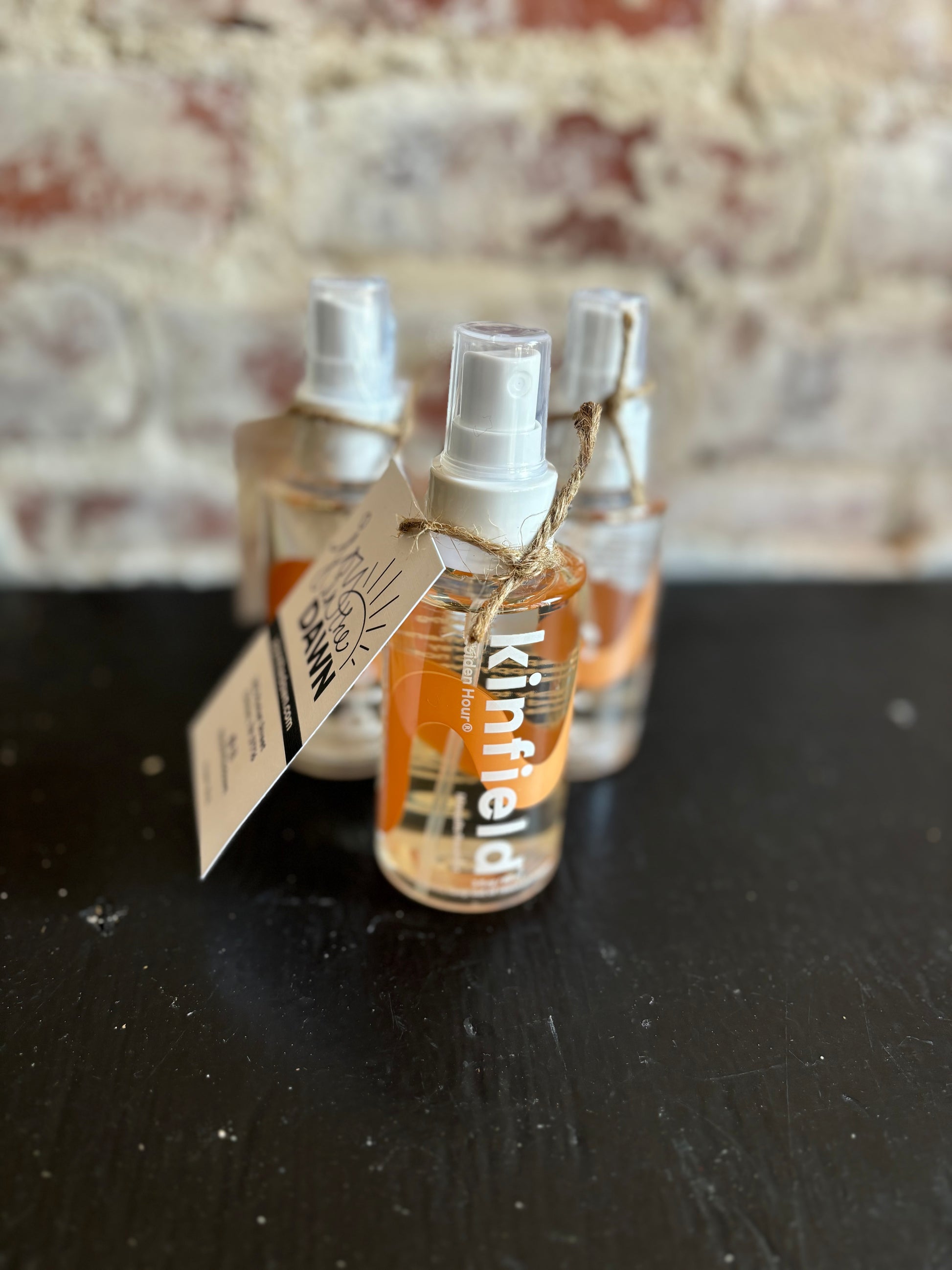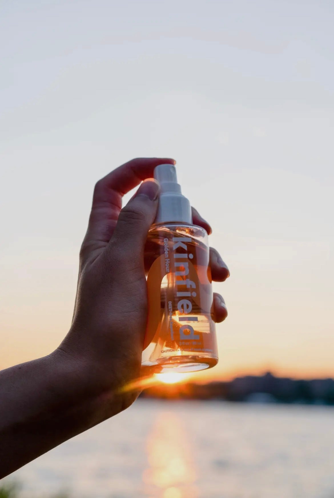 Golden Hour does the trick, and smells amazing, think a little bit citrus, a little bit vanilla. Kinfield is vegan and cruelty free.