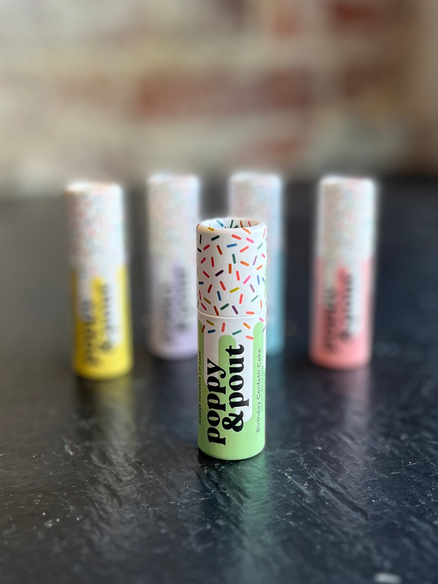 Every Poppy & Pout lip balm is made with 100% natural ingredients and hand-poured into eco-friendly cardboard tubes!