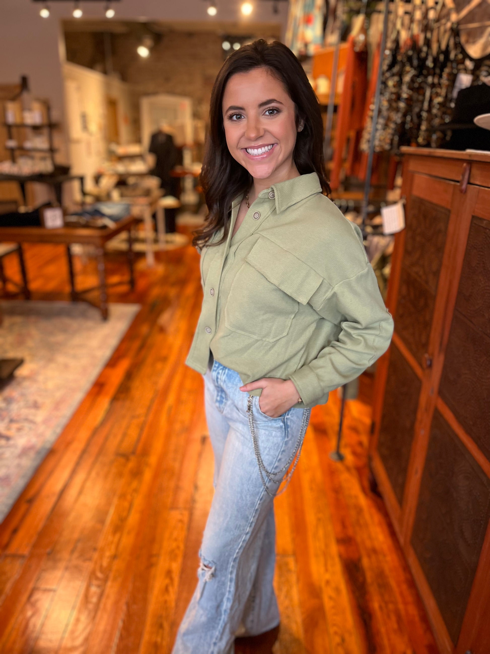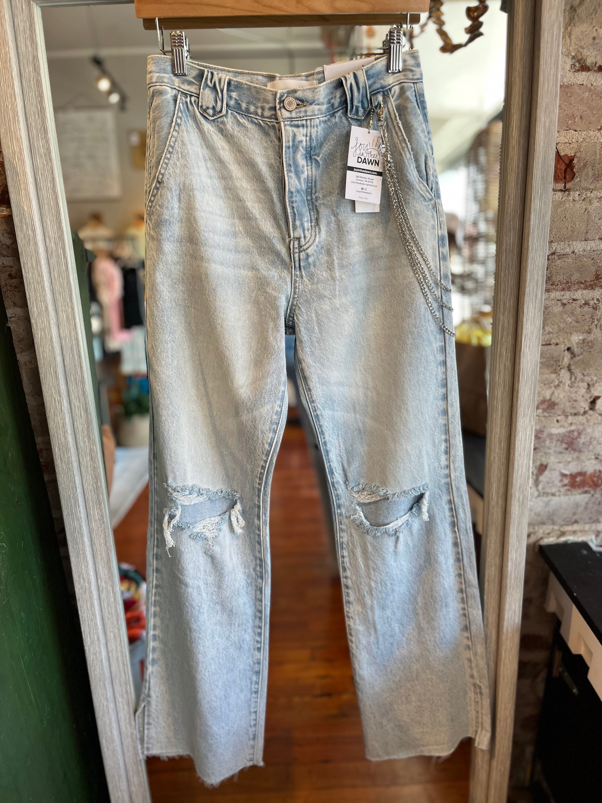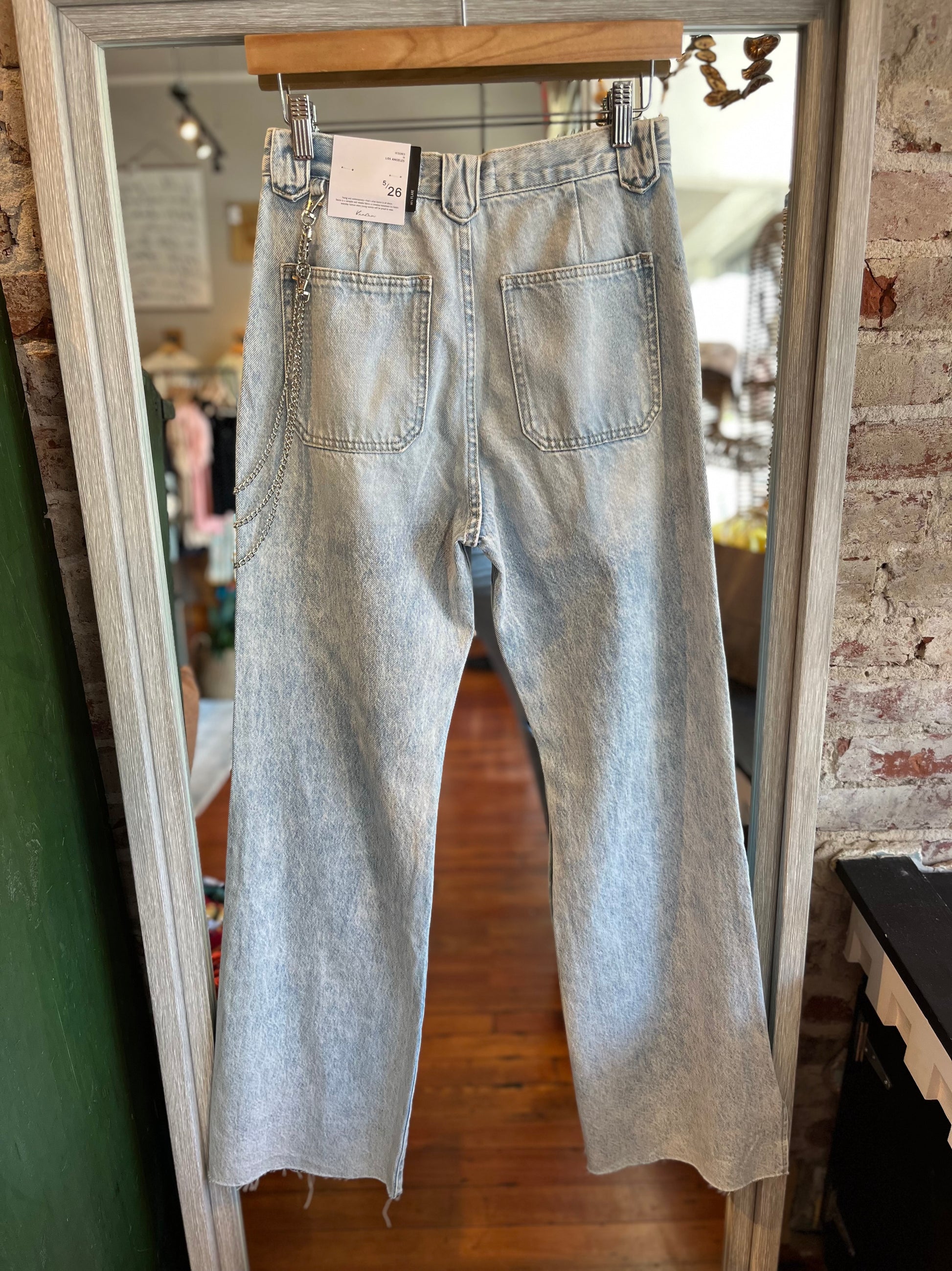 We just love this pair of denim! Leave the chain on for some fun or remove it!