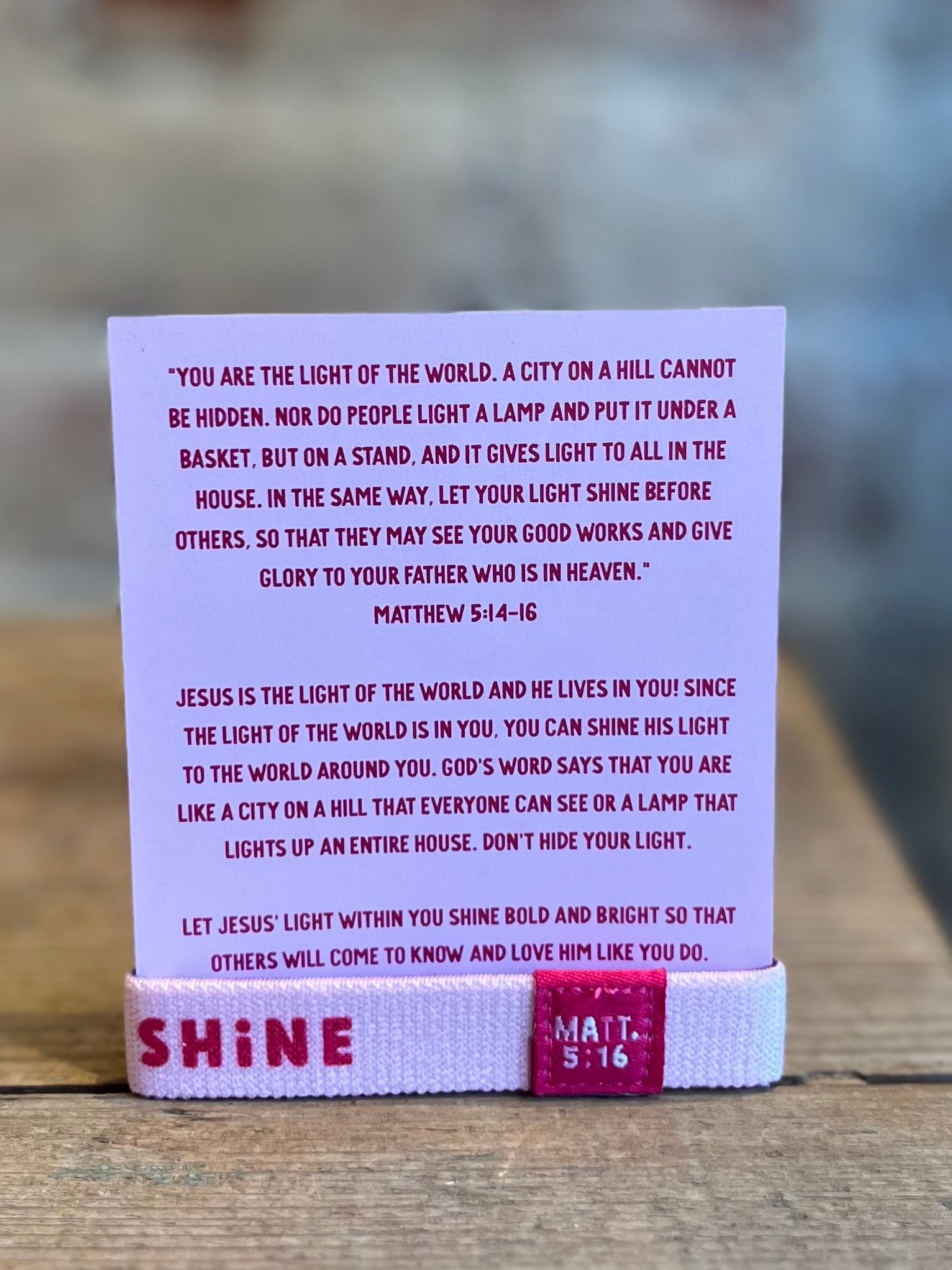 Displayed on card with artwork on front and verse reference on back.