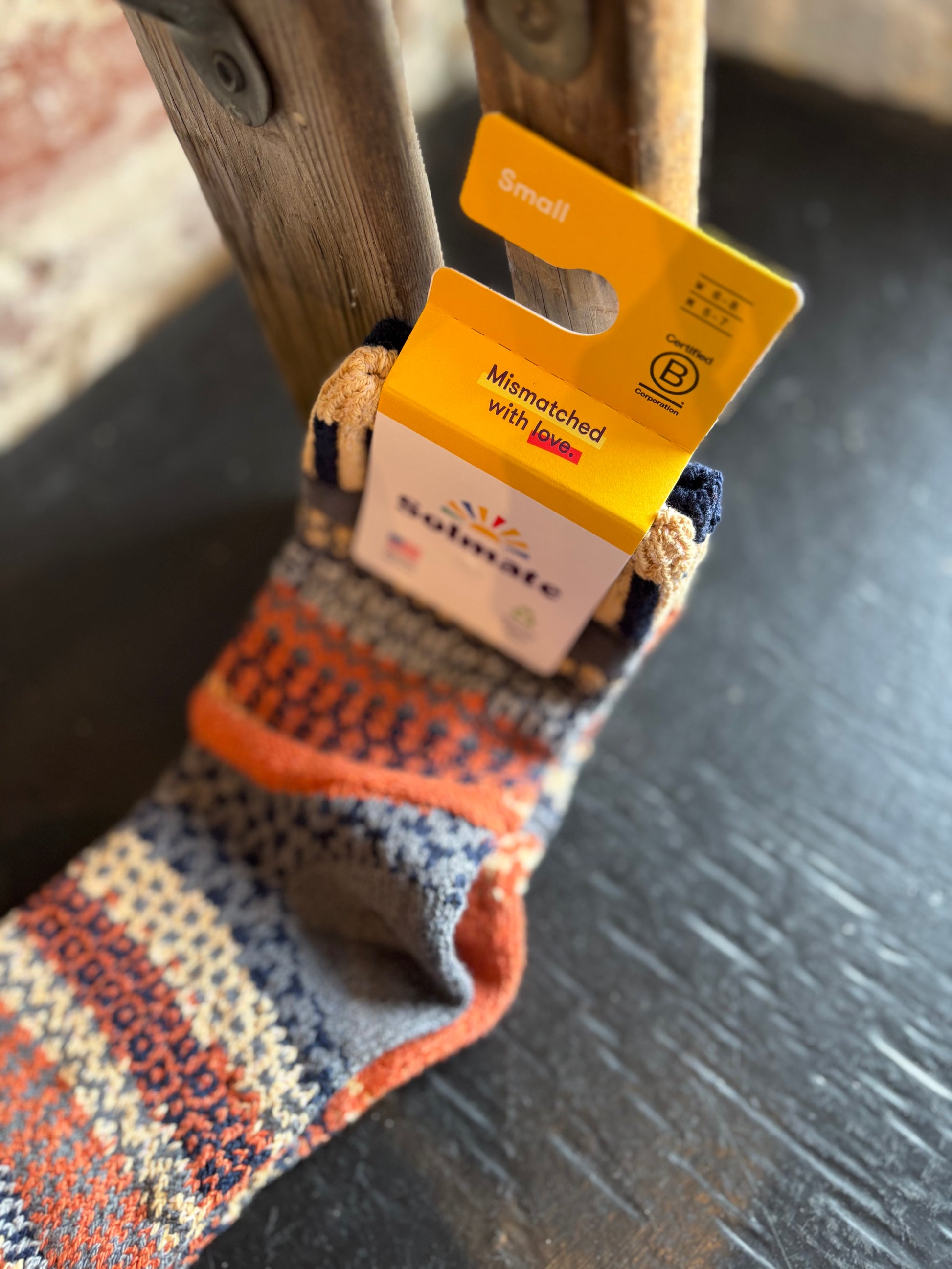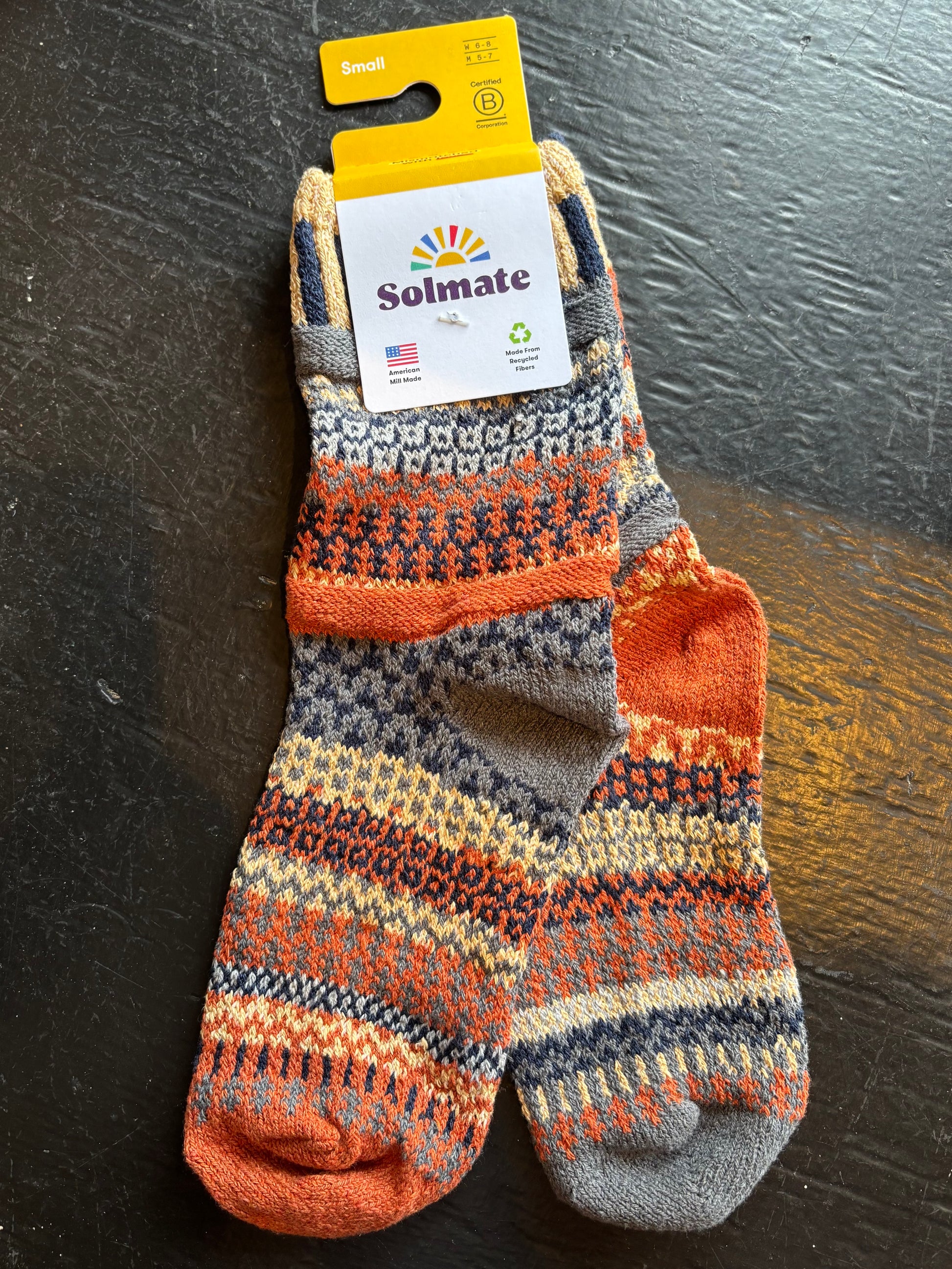The coziest natural socks! Knit with recycled cotton yarns, here in the USA, these socks are colorful, cozy and oh-so-stylish. Socks are unisex and fit most adults.