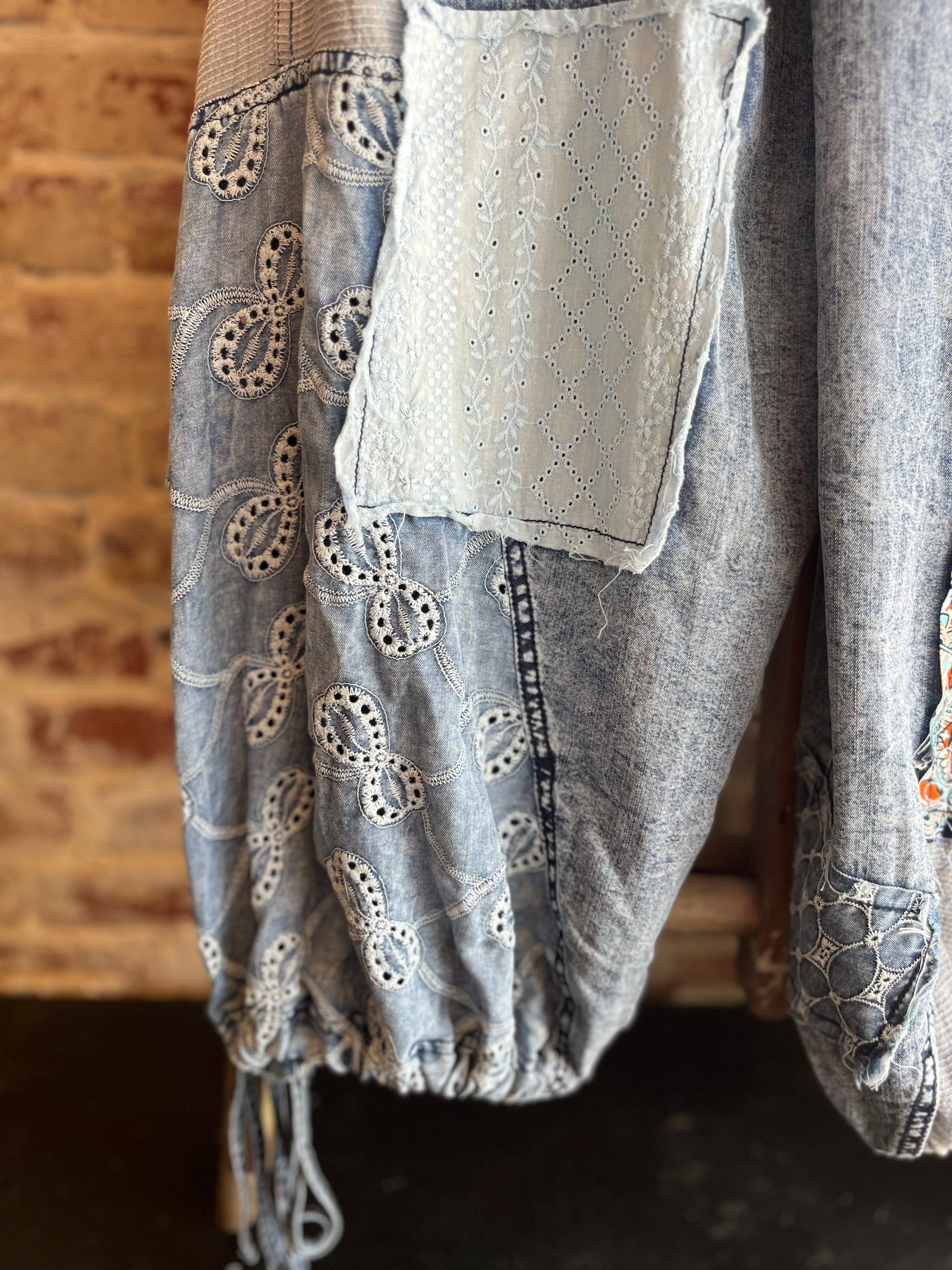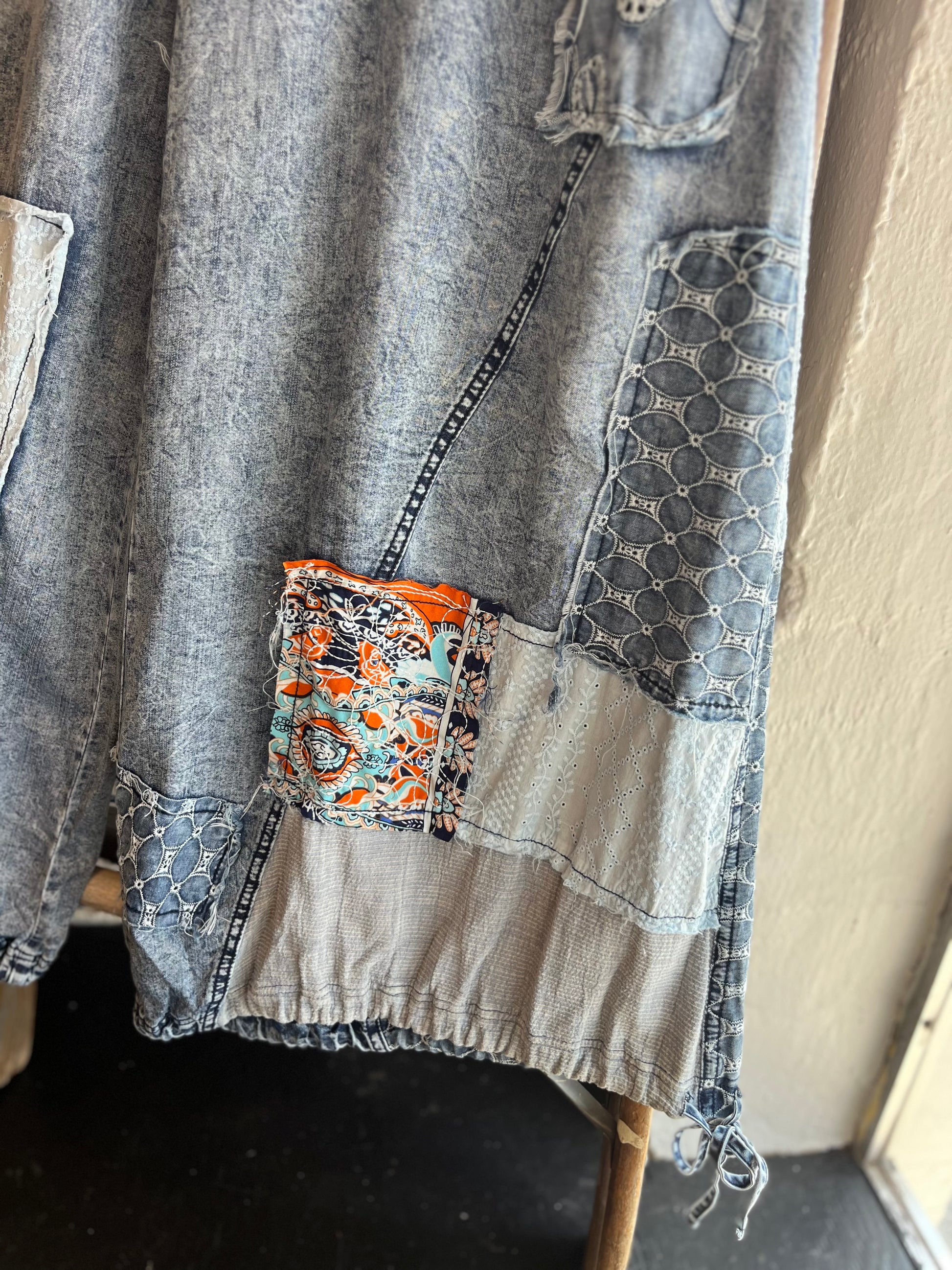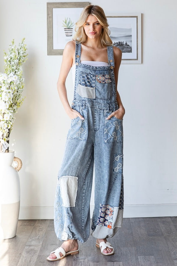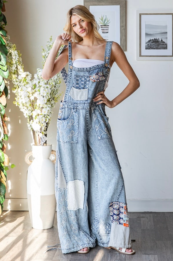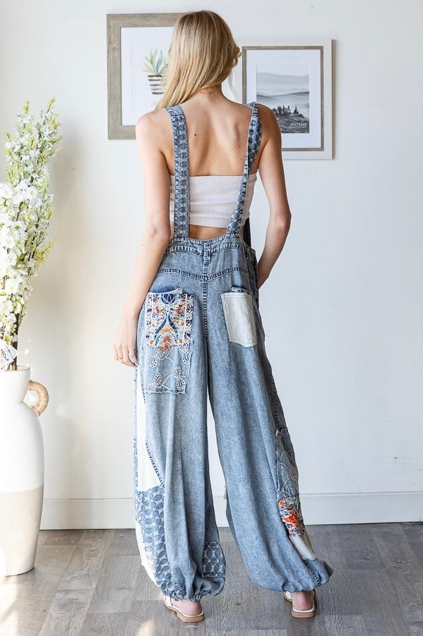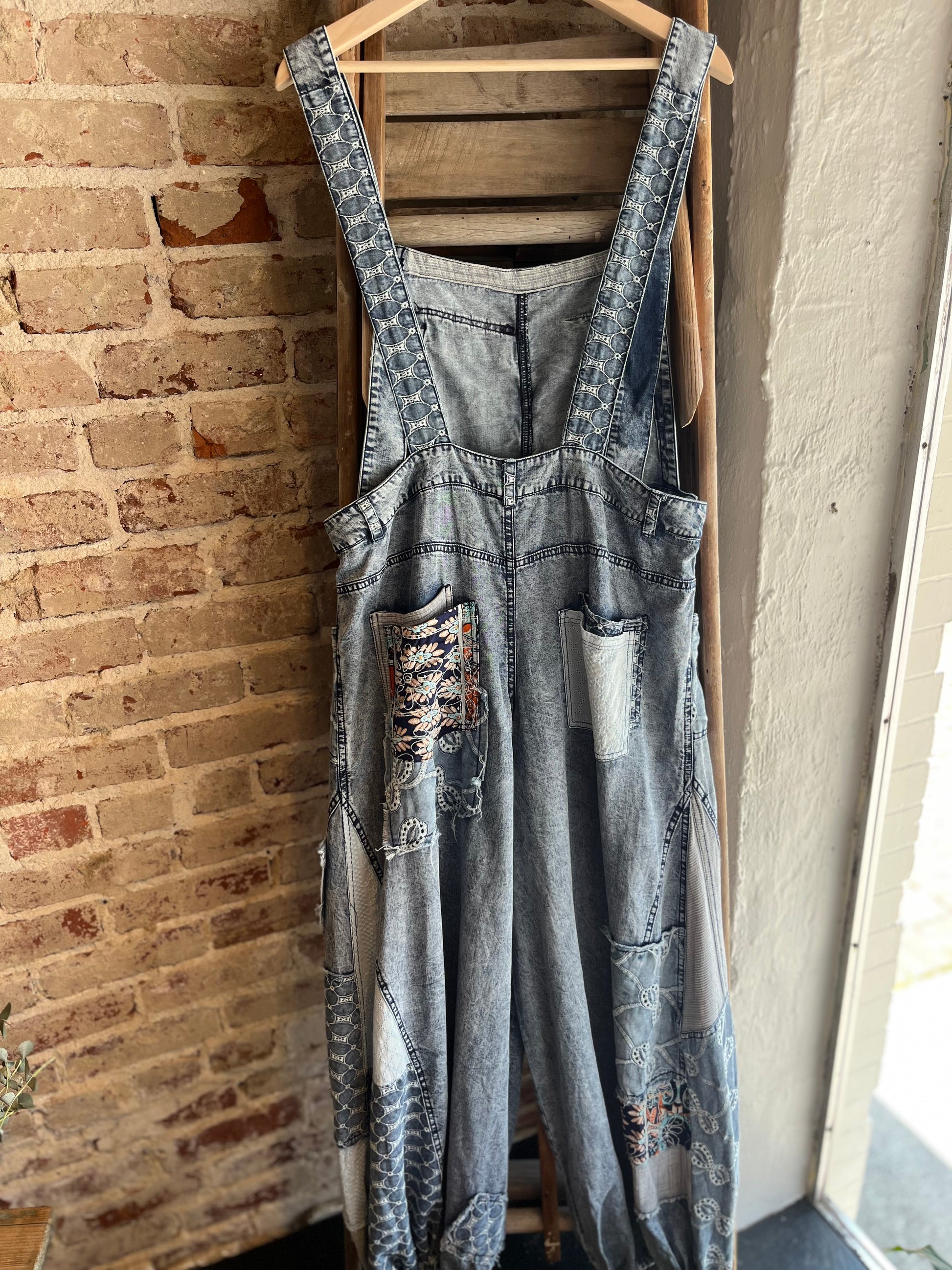 Details matter! These patchwork Tencel overalls are super soft and comfy with tons of special details from the stitching to drawstring ankles. Wear them as wide leg flowy pants or drawstring them up! The straps are adjustable with cute wooden buttons. Usable pockets on hips and more! A special addition to your wardrobe!