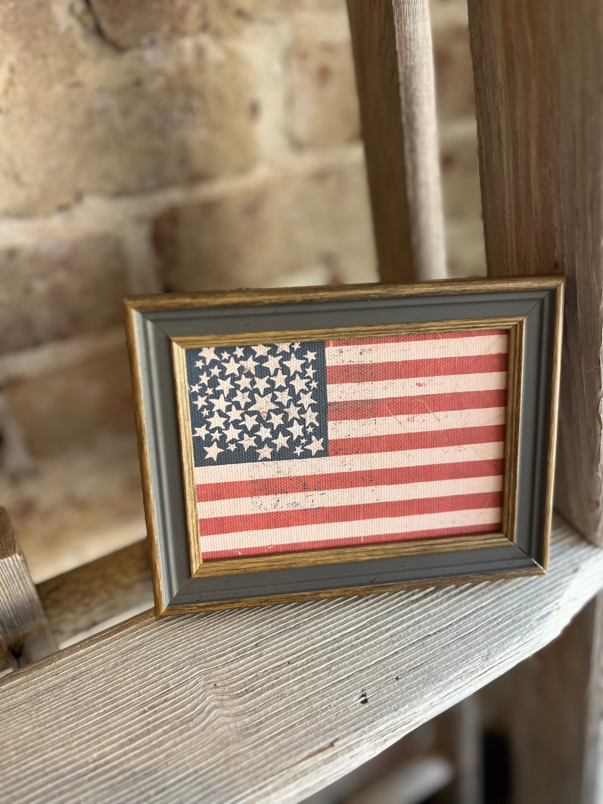 Rustic Flag Framed Antique Art