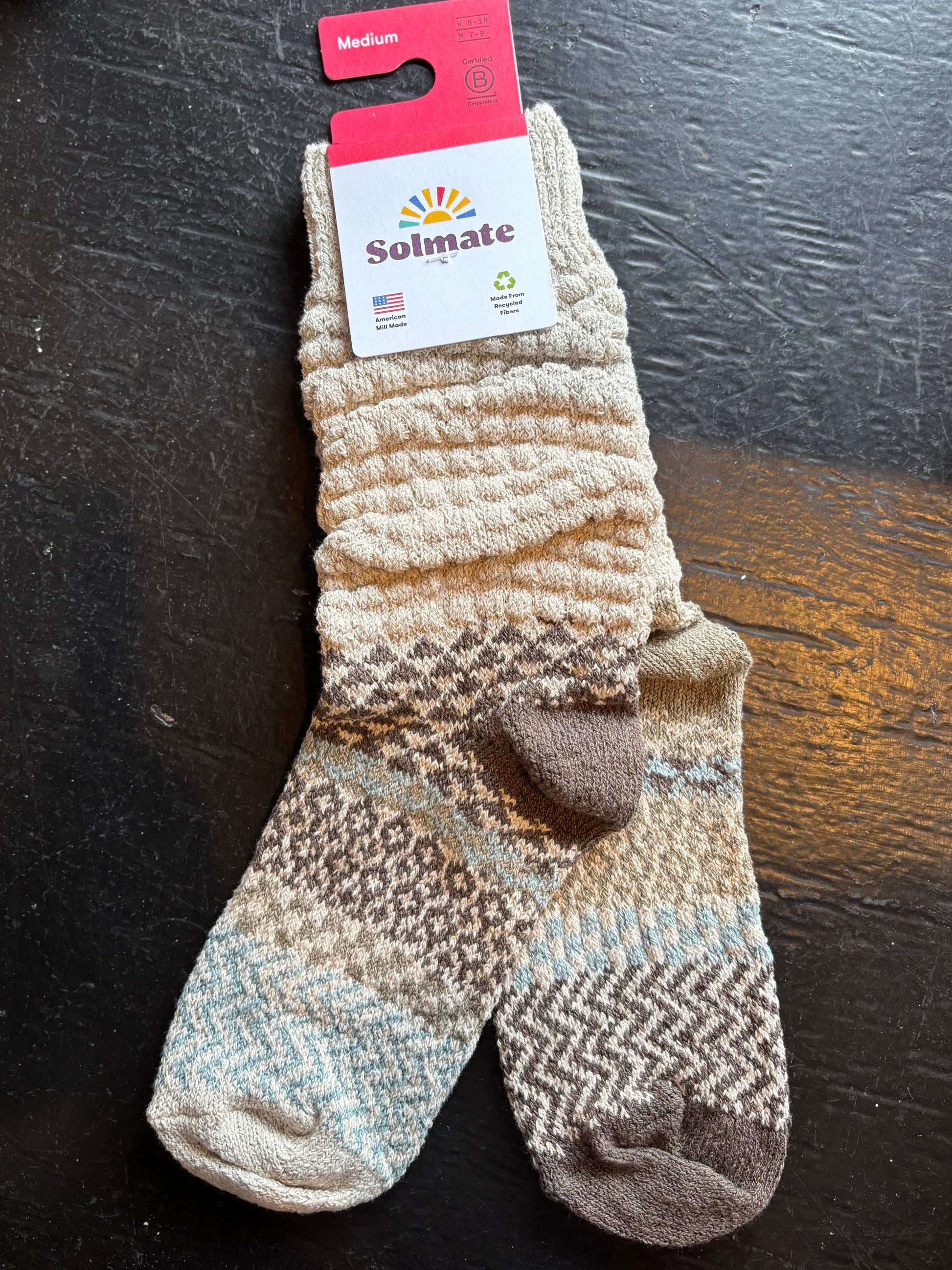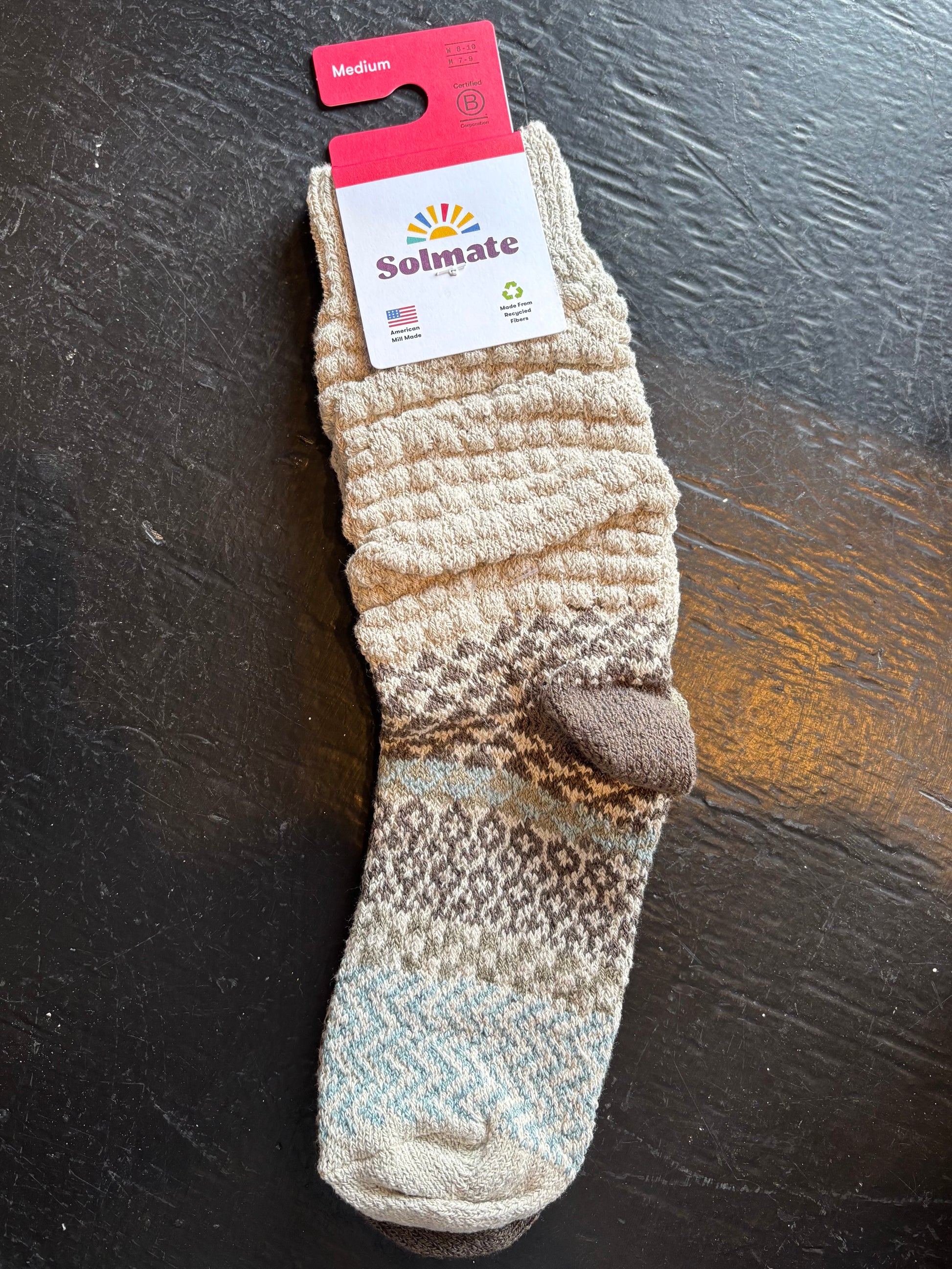 These Slouch Socks are a union of a solid colored, cozy bubble stitch with whimsical, classic Solmate colors and patterns. These hybrid socks have all of the style and comfort of our traditional socks with a low-key but still playful vibe all around.