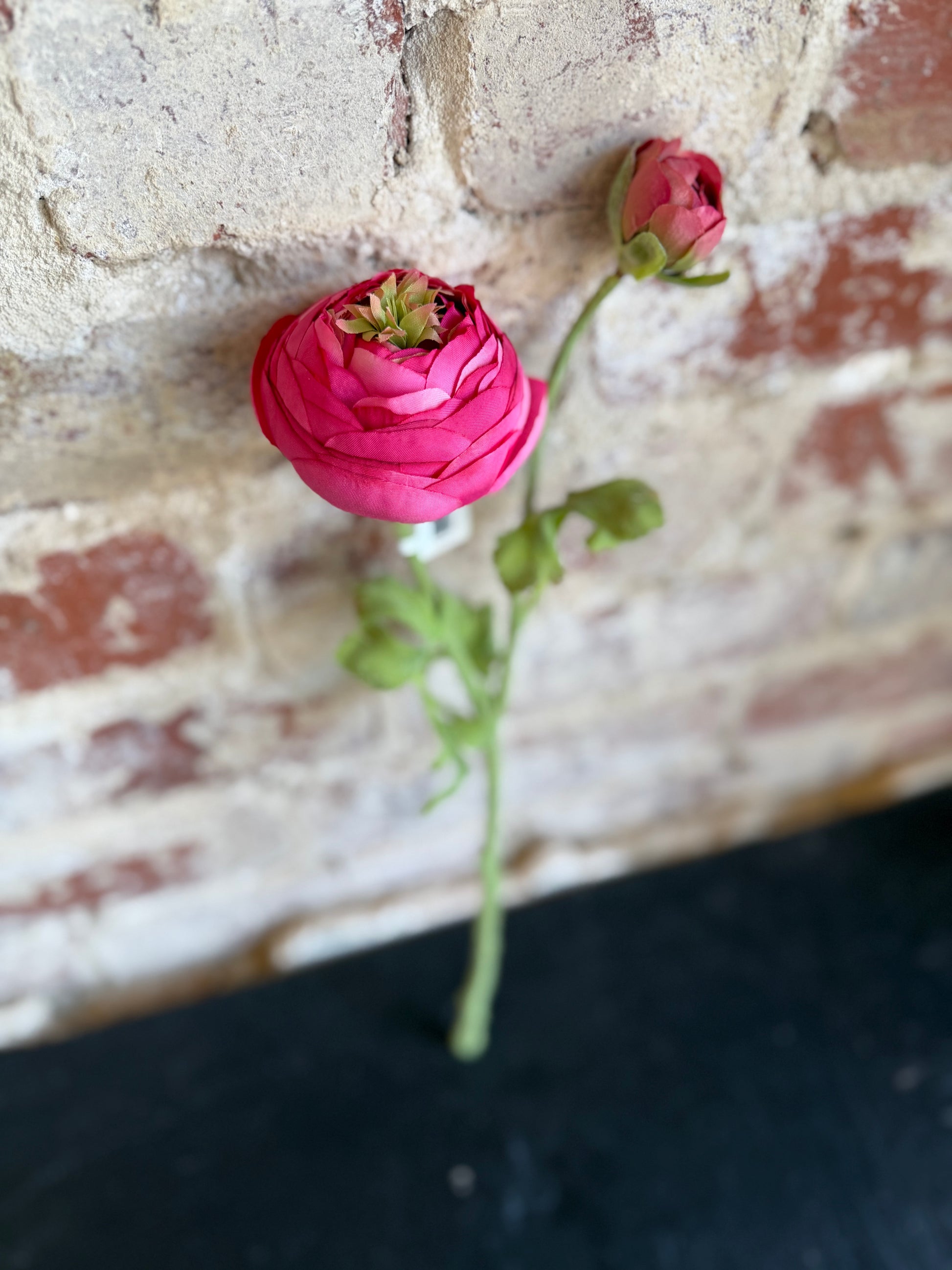 One of our favorite flowers! This beautiful handcrafted Ranunculus stem in Pink Cerise mix features all of the delicate little details that make gardens so special. These are sold by the stem with each stem having one flower & one bud. They are so lovely & life-like.