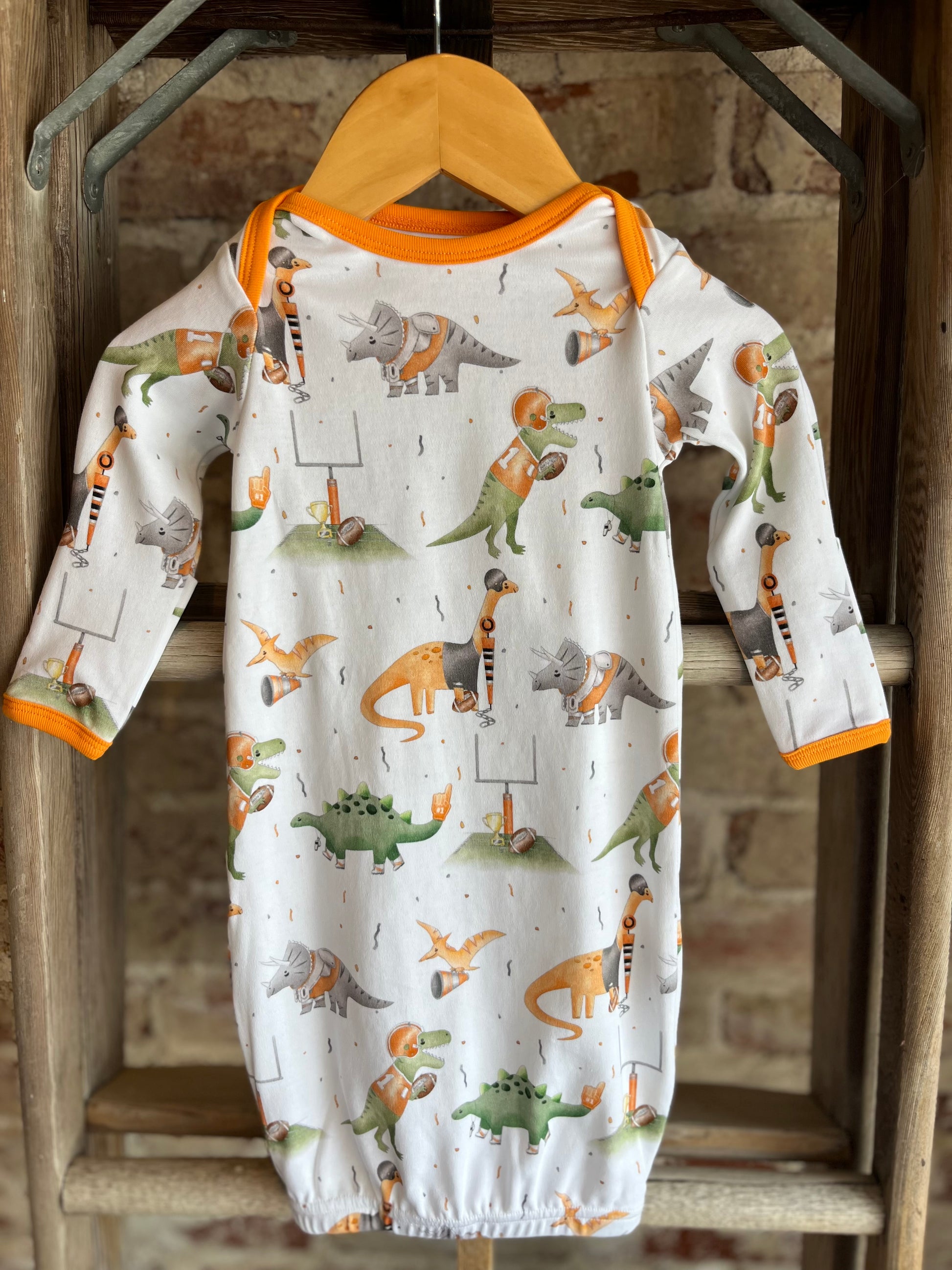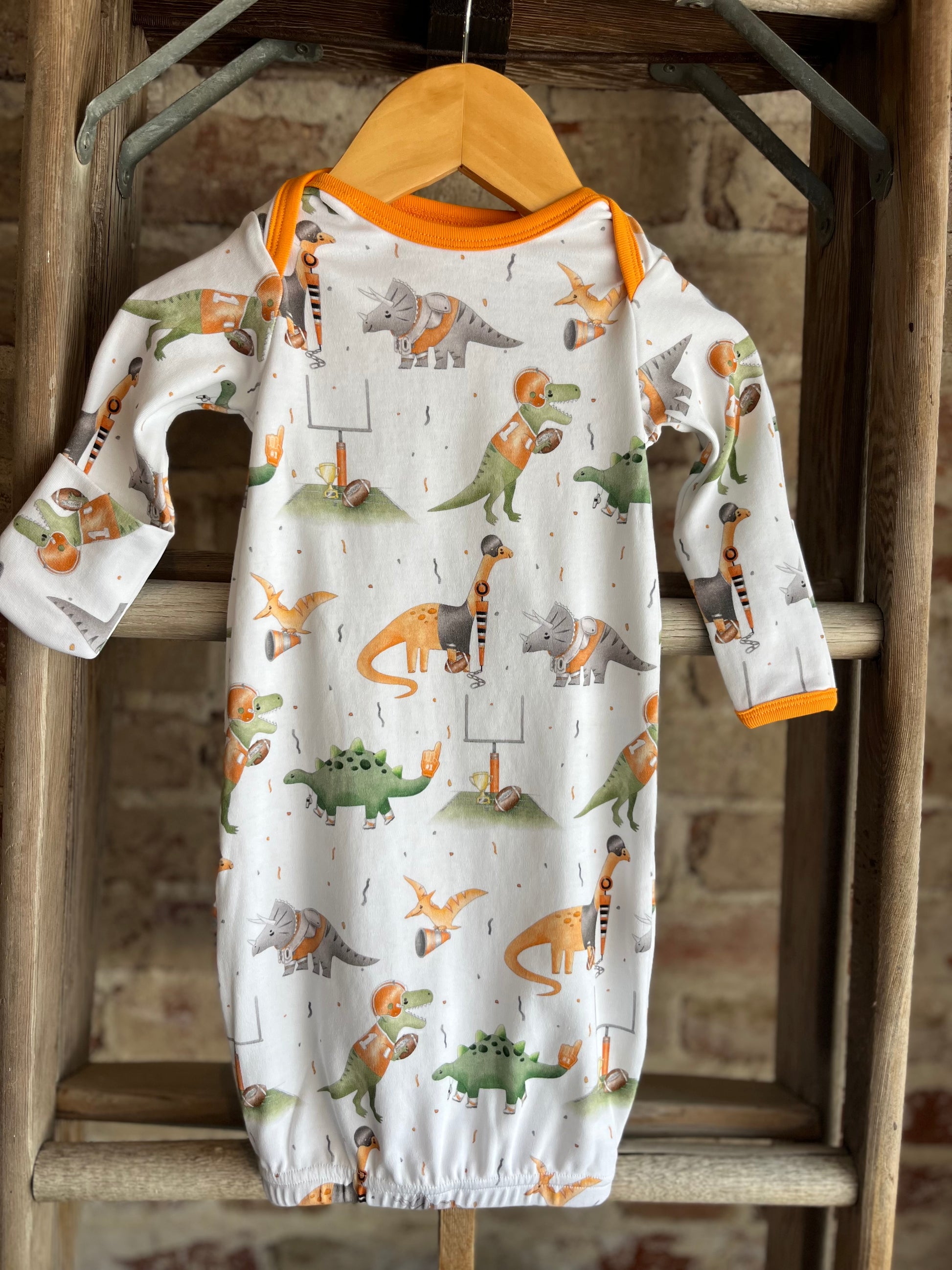 Let your newborn dream of the Tennessee Volunteers and dinosaurs in this precious gown!
