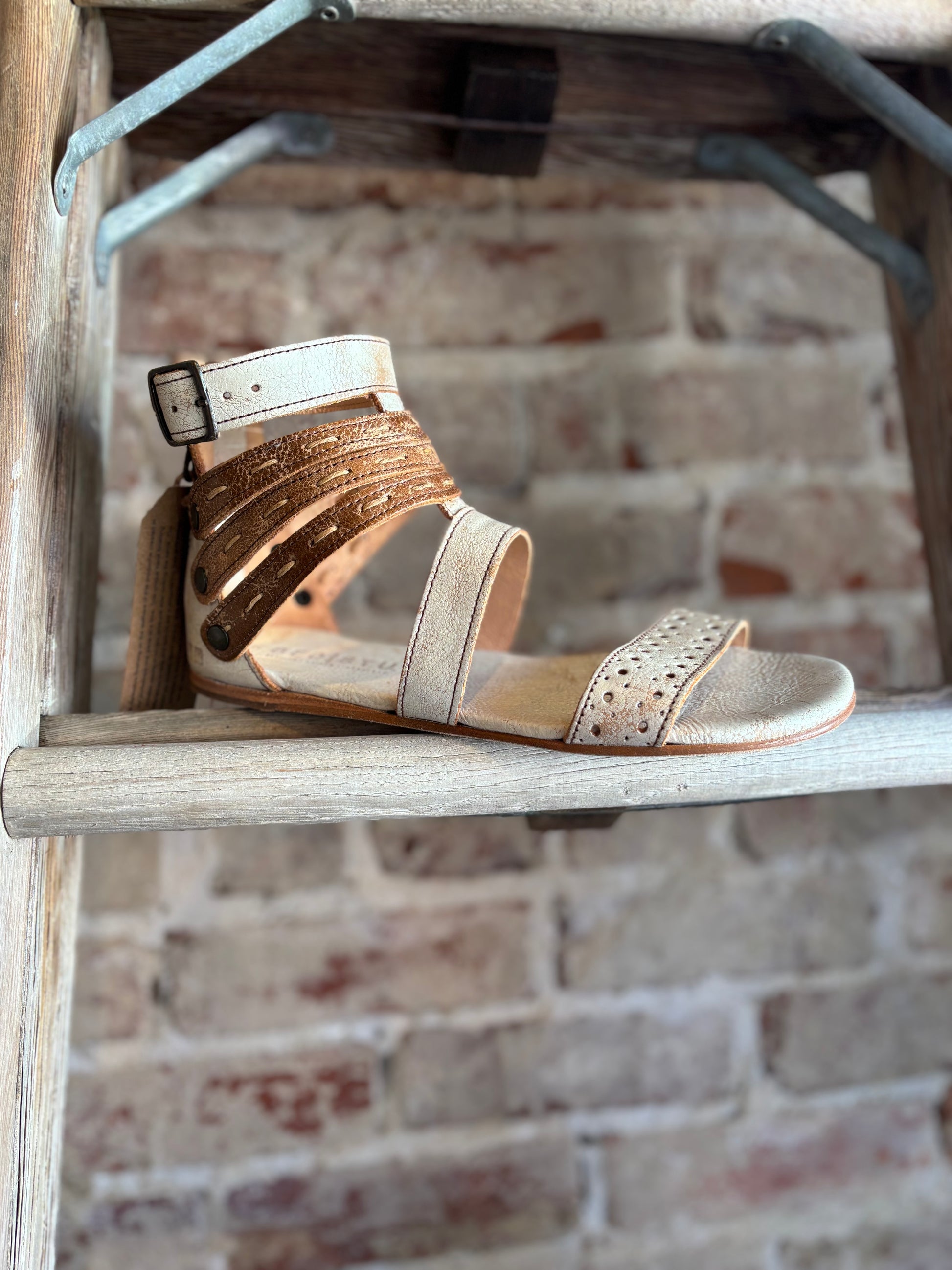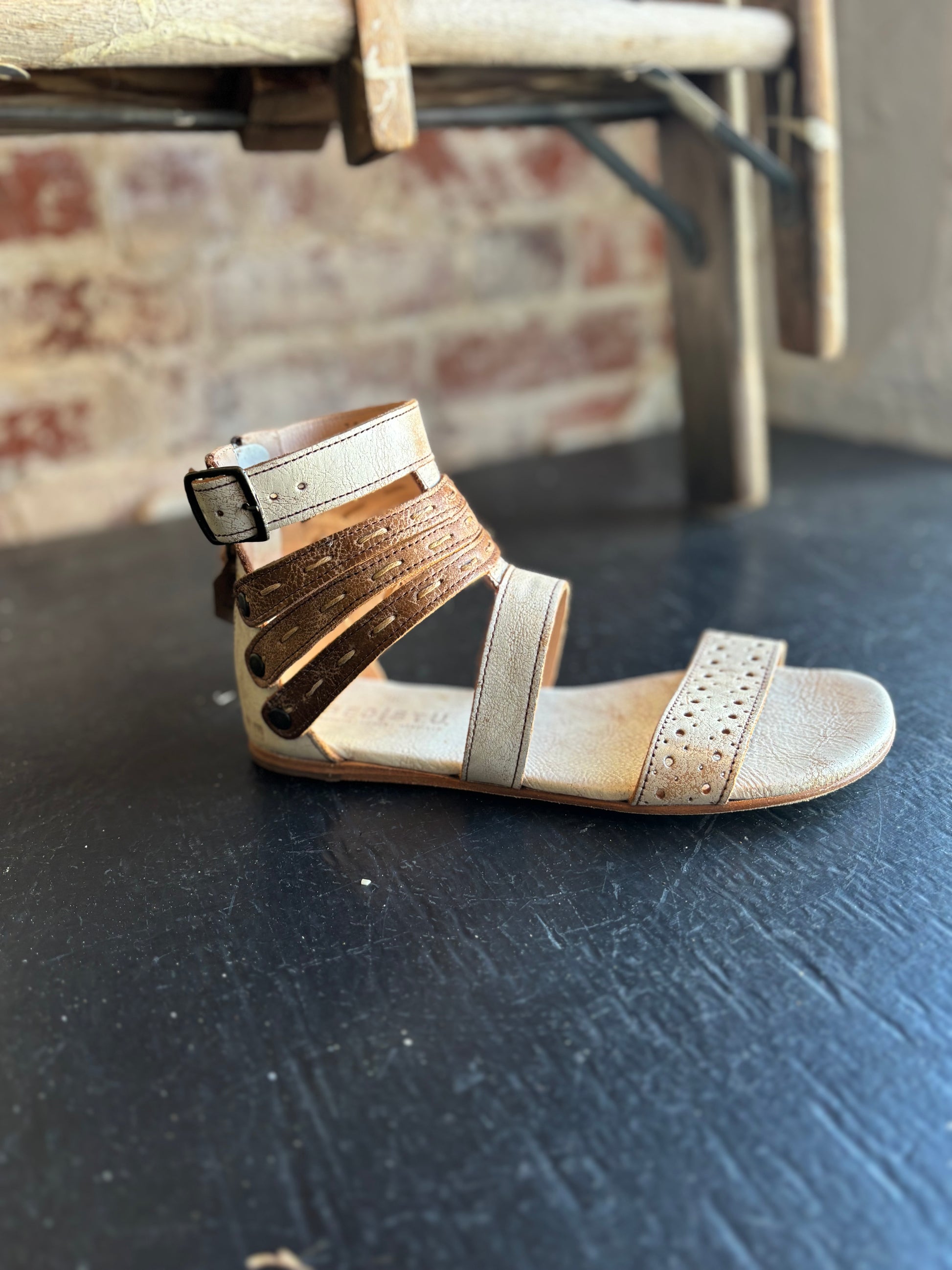 Washed Leather Sandals - Tan